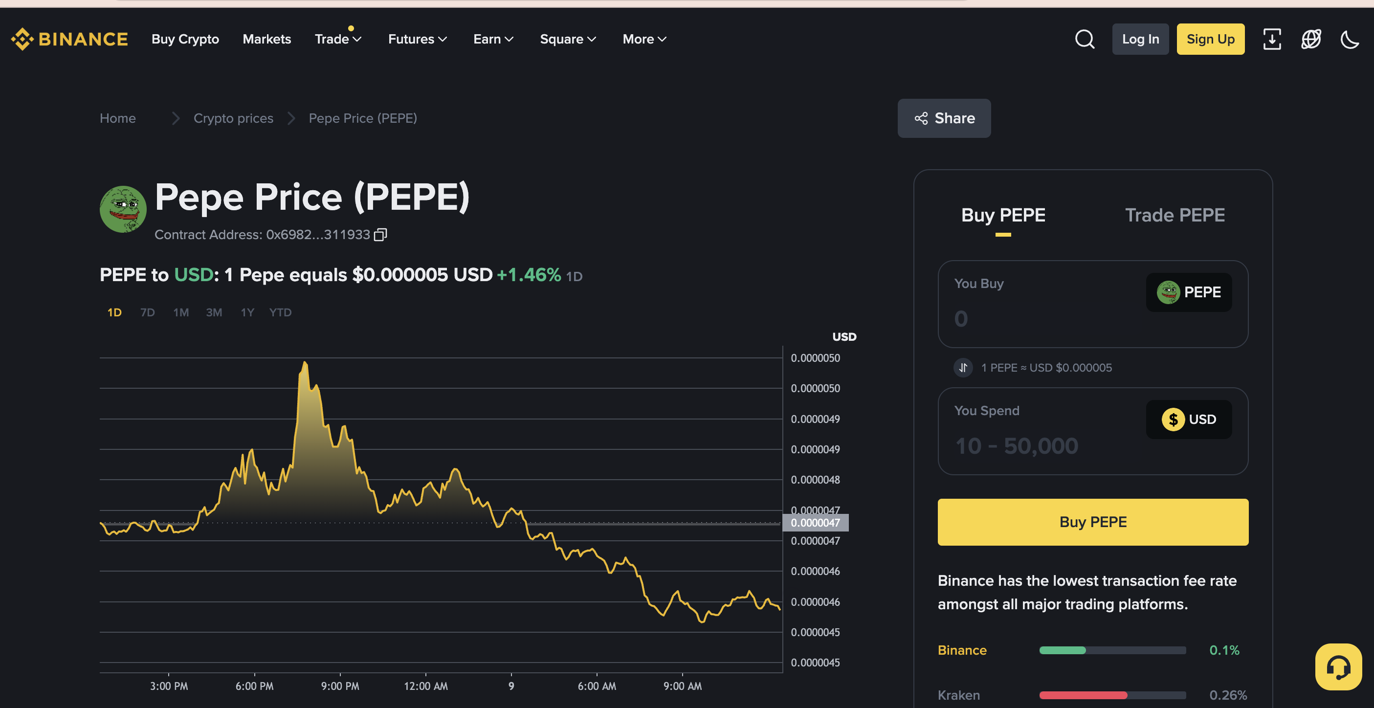 Централизованные биржи (CEX) — например, Binance, Coinbase или KuCoin — обычно позволяют торговать Pepe Coin к другим криптовалютам (например, USDT) или иногда к фиату (например, USD). Как правило, они берут торговые комиссии примерно от 0.1% до 1%, плюс комиссии на вывод.