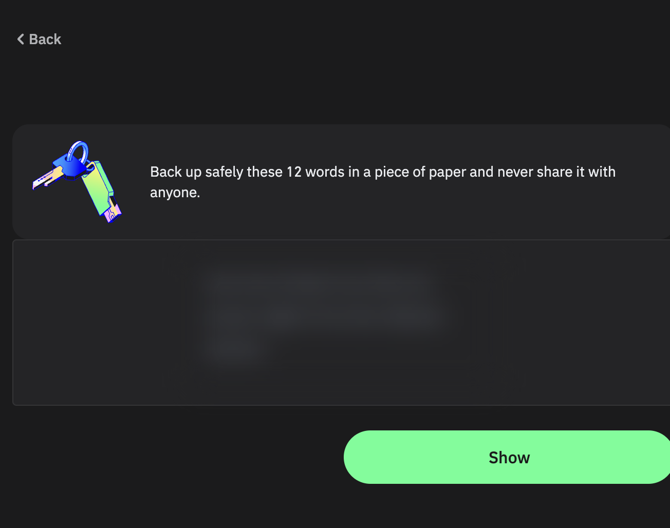 Sistem size 12 veya 24 kelimelik seed phrase verecek. Bunu kağıda yazıp güvenli bir yere koyun.Seed phrase doğrulaması